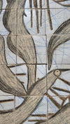 Este mural está inspirado en el hayedo de Montejo, situado en la sierra noroeste de Madrid, en la parte conocida como la sierra pobre, por su aislamiento. Gracias a ese aislamiento su belleza se conserva maravillosa y su otoño es una delicia. Este mural es un pequeño homenaje a todas las aves y otros habitantes, vegetales y animales, que conviven en ese ecosistema maravilloso.
